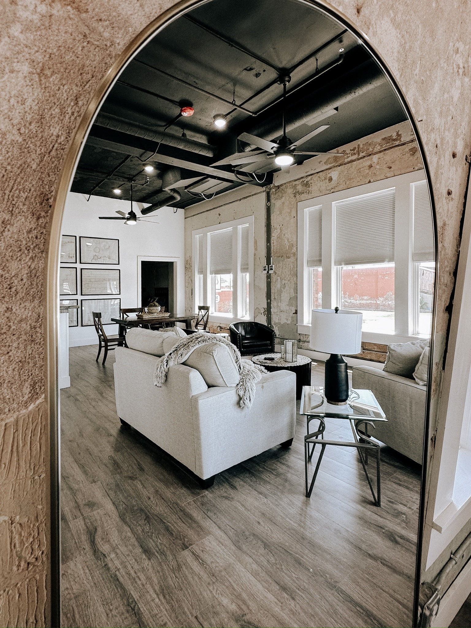 The building renovation began in 2020 with the ground floor and is now the home of a unique retail experience with locally owned shops, offices, and dining establishments. The crown jewel of the building is the ballroom touting marble walls and sparkling chandeliers where you can now enjoy a cup of coffee or a glass of wine. Our lofts offer a lifestyle second to none, from in-unit laundry to luxury plank flooring, exposed brick, stainless steel appliances, granite countertops, and huge picture windows. Wander down Main Street and enjoy downtown Denison offering events, live music, arts, shopping, and more.